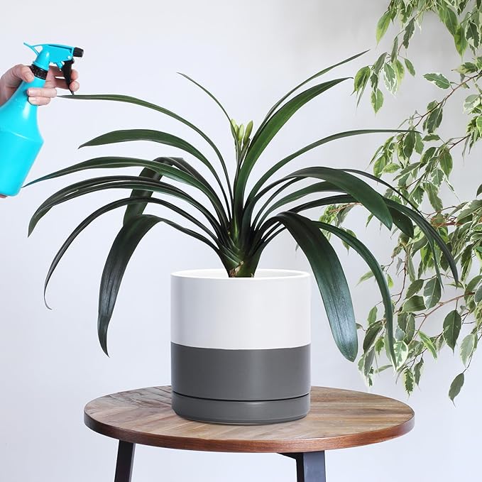 D'vine Dev Set of 2 Plants Pots, 8.2 Inch Ceramic Planter Pot for Plants with Drainage Hole and Saucer, White/Speckled Grey, 94-V-D-6