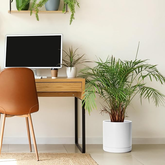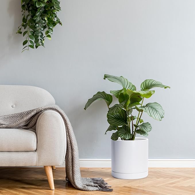 D'vine Dev Set of 2 Plants Pots, 10 Inch Ceramic Planter Pot for Plants with Drainage Hole and Saucer, White, 94-V-E-1