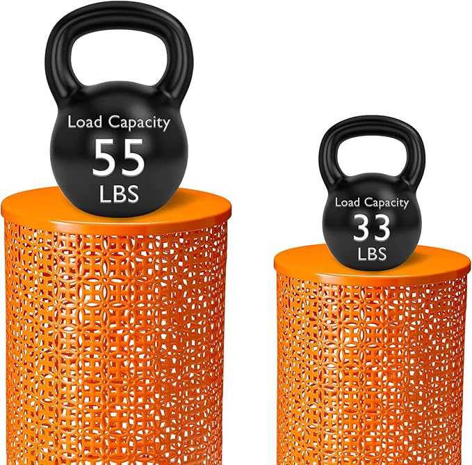 - Sturdy : The set of 2 decorative garden stools are made of high quality metal, sturdy and rustproof for long-time use. Size: L: 14.5"D×19.25"H, S: 12.5"D×16.5"H. Weight capacity: 55 lb.