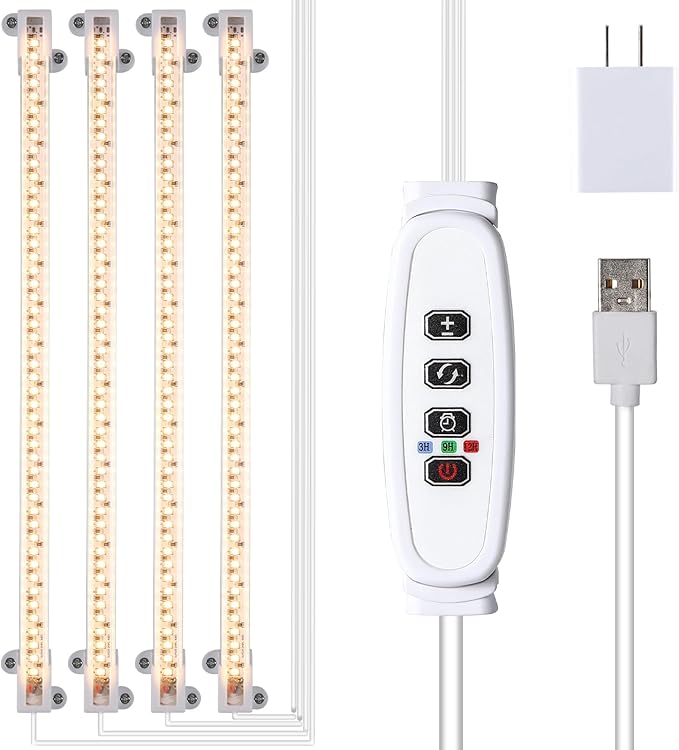 LED Plant Growing lamp, 3000K Full Spectrum Grow Light Strips for Indoor Plants with 3/9/12H Timer & 10 Dimmable Levels, Led Growth Light for Green House Hydroponics Succulent 13In 4Head