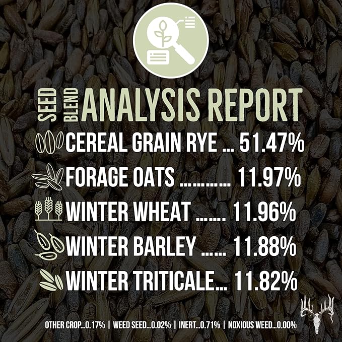- Seed mix contains oats, barley, winter wheat, triticale & rye cereal grain berry crop plants.