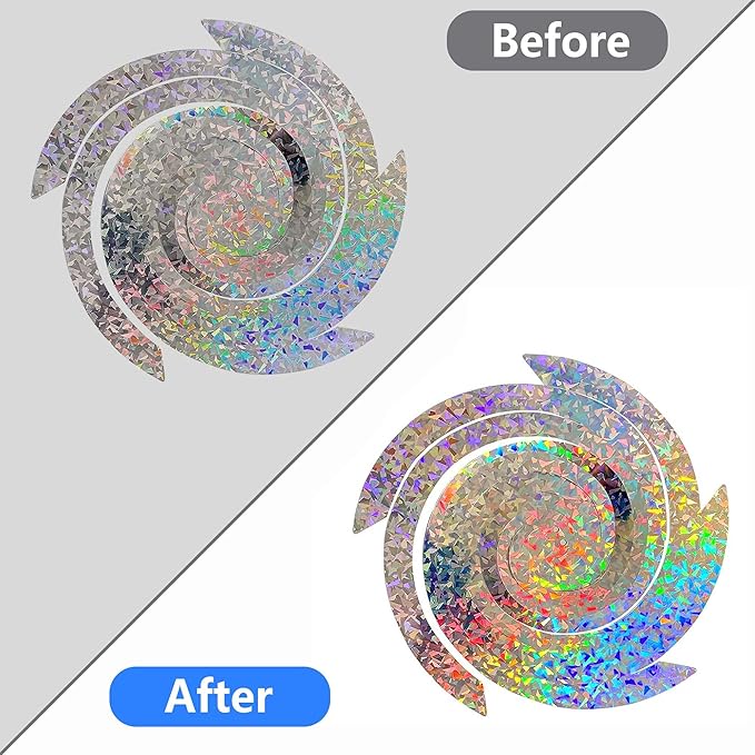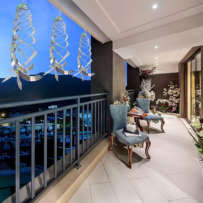 - Bird Repellent Spiral Reflector: Our visual reflective ornamental spinner utilizes wind-driven motion and light refraction to produce bright flashes when spinning in breezes, confusing birds and driving them away. This device is not effective against highly observant or intelligent birds such as crows or hawks. Actual results may vary.