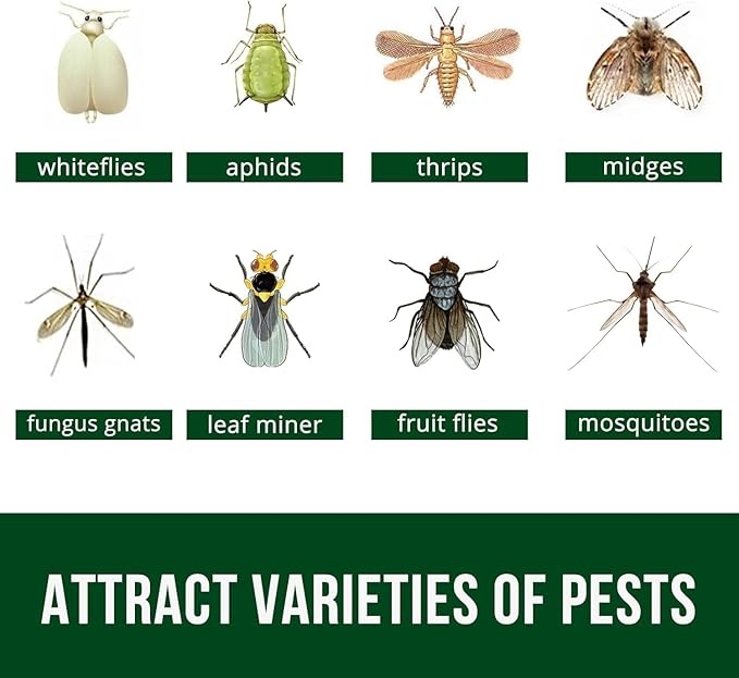 - Multiple Scenarios Use: Specially designed to catch flying plant pests. Suitable for outdoor or indoor plants, especially potted plants. Captures a variety of flying insects such as whiteflies, mosquitoes, fungus mosquitoes, etc.