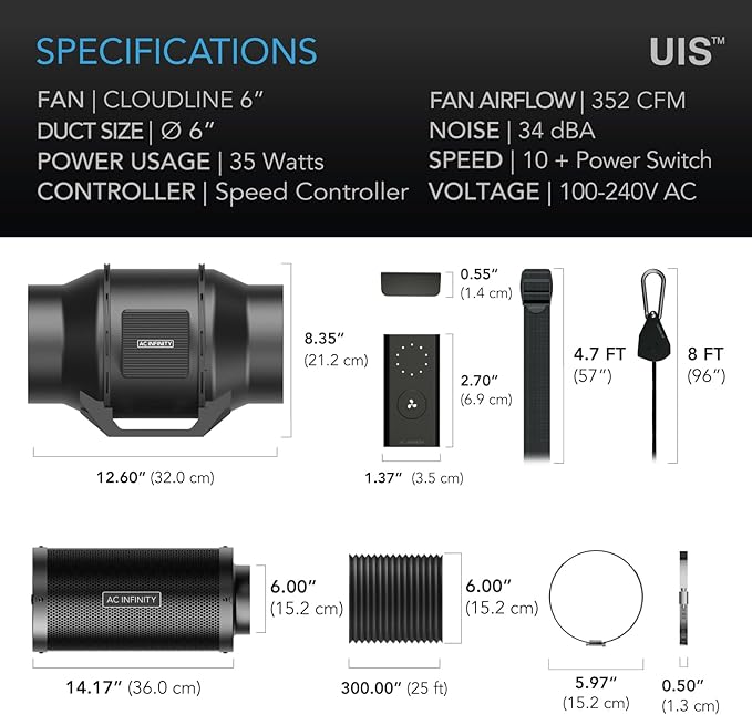- Features the CLOUDLINE inline fan with speed controller, delivering silent and efficient performance.