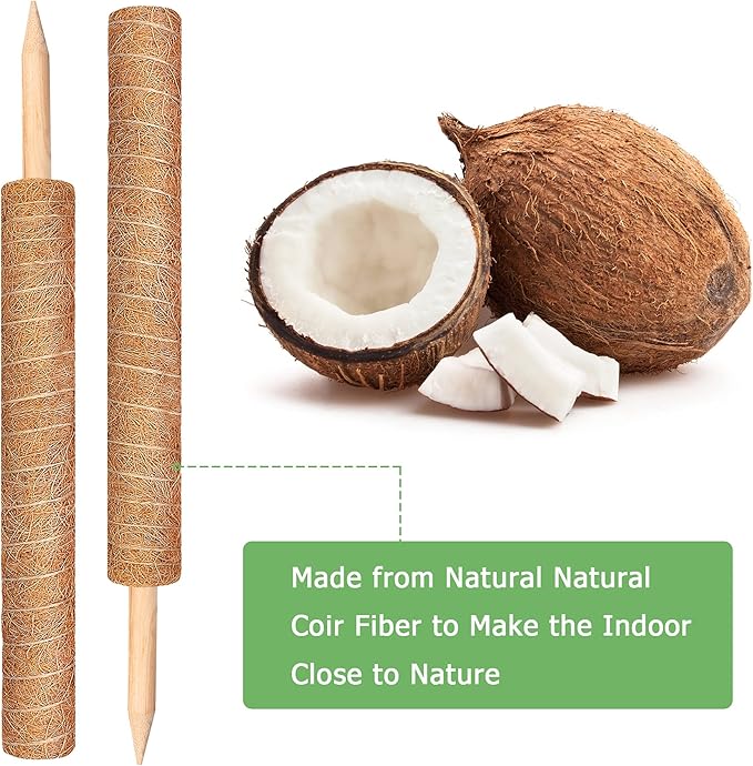 - Natural Coconut Fiber Material: Made of natural coco fiber, our moss pole for plants monstera will be blended with your plants and makes them grow upwards. Our plant stakes are strong and durable. The sharp wooden stakes make you easily insert the poles into the pots