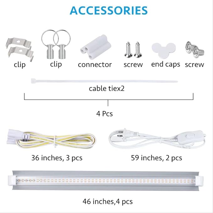 - Easy Installation - Plug and play. And could link up to 4 grow lights in a series by inclueded 36 inches connecting cords. Using clips to mount on ceiling, using cable ties to tie on grow light stand, or using hang ring to hang the lights, multiple installation methods provide the best way that you need.