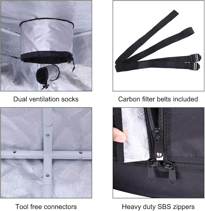 Plant Grow Tent, Black, 240x120x200cm, Indoor Growing, Enclosure with Observation Window and Floor Tray
