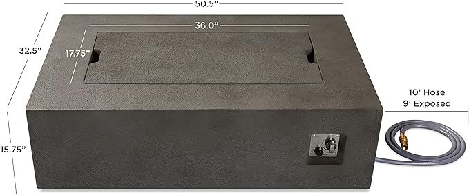 - Burn area dimensions: 36"L x 17.75"W x 2.25"H