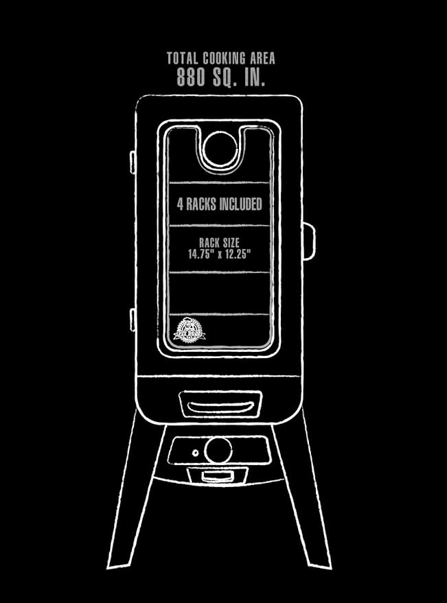- 880 sq. inch cooking area; 4 racks that measure 14.75" x 12.25" each