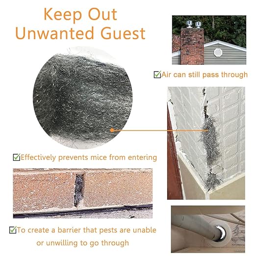 - 【Widely Use】: Steel wool can be used for indoor and outdoor filling. Such as holes or crevices in brick walls, around plumbing pipes air conditioning units, windows, vents, siding, garage, kitchen, attic and more. Effectively deter rodents, insects and other pests from entering homes or office buildings.