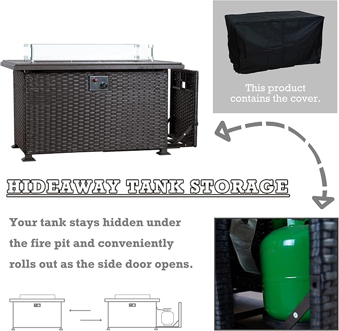 - ✅ Slide Out Tank Holder - The patio fire pit table has a slide-out tank holder, making it easy to change the propane tank when needed.