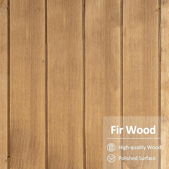 - Fir Wood: The outdoor storage cabinet is made of high-quality pure fir wood, and the exterior has been polished to express a rustic style. Medium brown blends easily with other décor and natural settings.