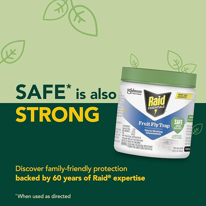 - Introducing Raid Essentials Fruit Fly Tap that is safe* to use around kids and pets (*When used as directed)