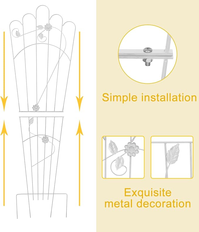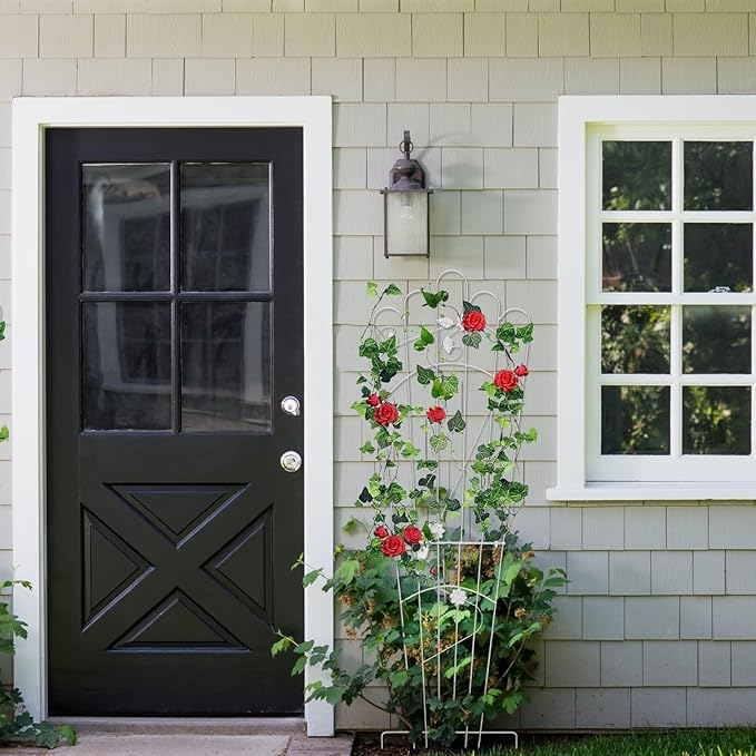 - MULTI-PURPOSE PLANT SUPPORT: More plants can be displayed using a plant trellis, including climbing roses, cucumber vines, ivy, clematis, morning glory, grapes, and potted vegetables with long stems, among other things. Trellis for outdoor climbing plants can also be used as a barrier to enhancing the appearance of your home or yard.