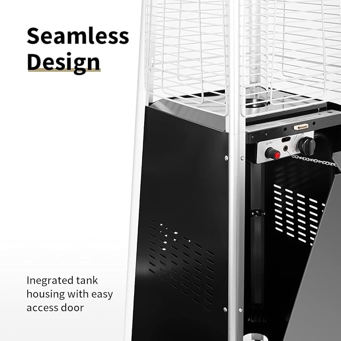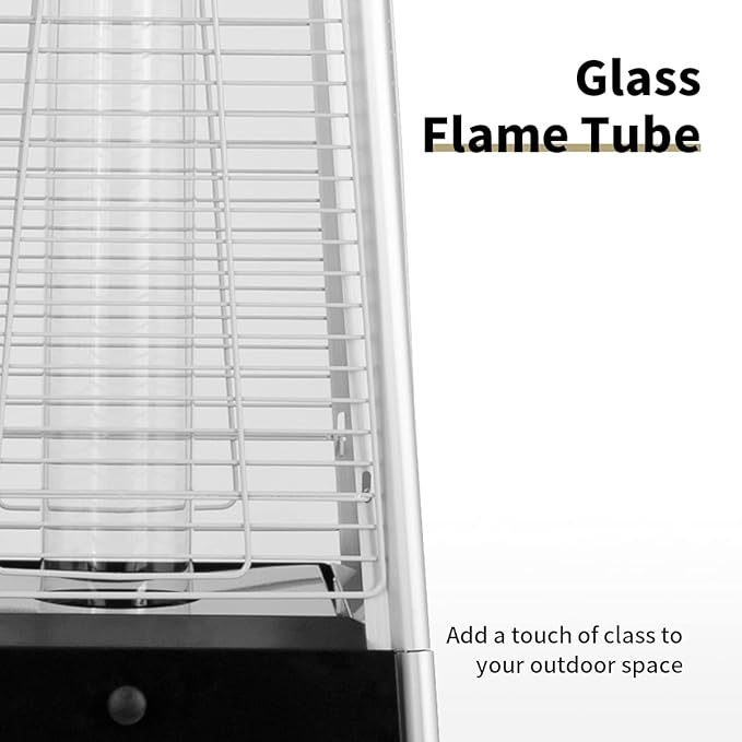 - DESIGN: Add a touch of class to your backyard, patio, deck, garden or restaurant with this elegantly designed outdoor propane heater. Your guests will be in awe as the flame inside the quartz glass tube energizes the atmosphere. Not only is this outdoor heater great for heating but it also enhances the aesthetic of your outdoor space.