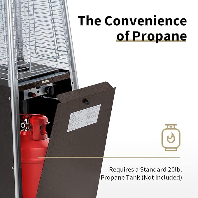 - GAS TYPE: This pyramid propane heater uses a widely available standard 20lb. propane tank (not included)