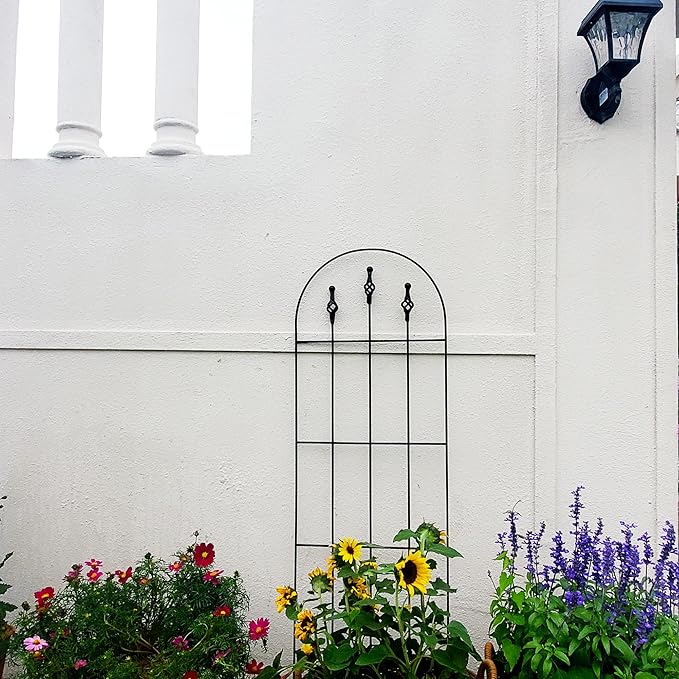 - [High Quailty Rustproof Material]: This trellis stands well against wind.. Unit dimension: H 4FT x W 1.3FT. Weight: 5.6 lb. Package include: 2 pack of garden trellis.