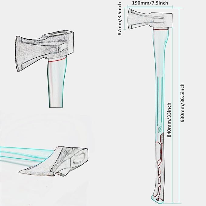 - [Anti-Slip Handle]-This splitting maul designed with 36-Inch Lightweight Fiberglass-Composite Handle & Ergonomic TPR shock-absorbing anti-slip Grip which will reduce the strain on your hand resists slipping, and adds comfort.