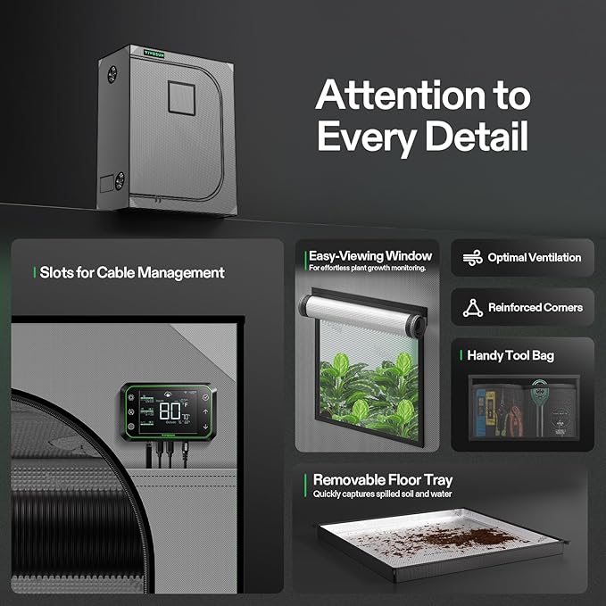 - Observation Window + Removable Floor Tray: Our easy-access observation window makes it easy to observe your plants; The detachable floor tray captures any spilled soil and keeps the tent clean