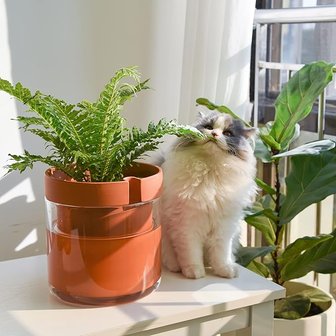 - Self-Watering System: The bottom quarter of the terracotta pot is unglazed, allowing plants to absorb water through the pot walls.