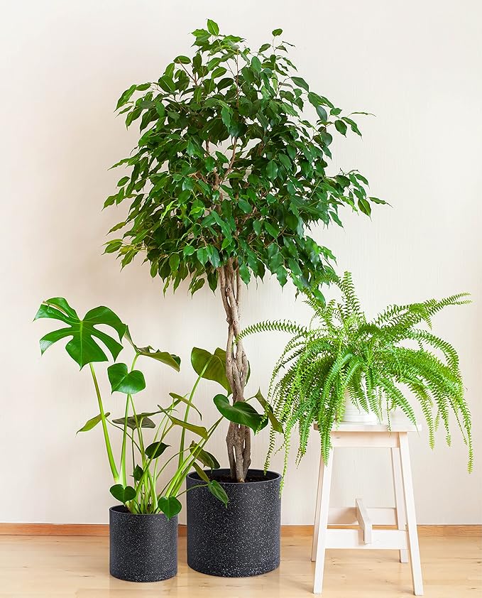 - Large Set of 3 Planter Pots: 6.5 Inches, 8 Inches, 10 Inches in Diameter & Height with tray/saucer included - Plants in the images are not included.