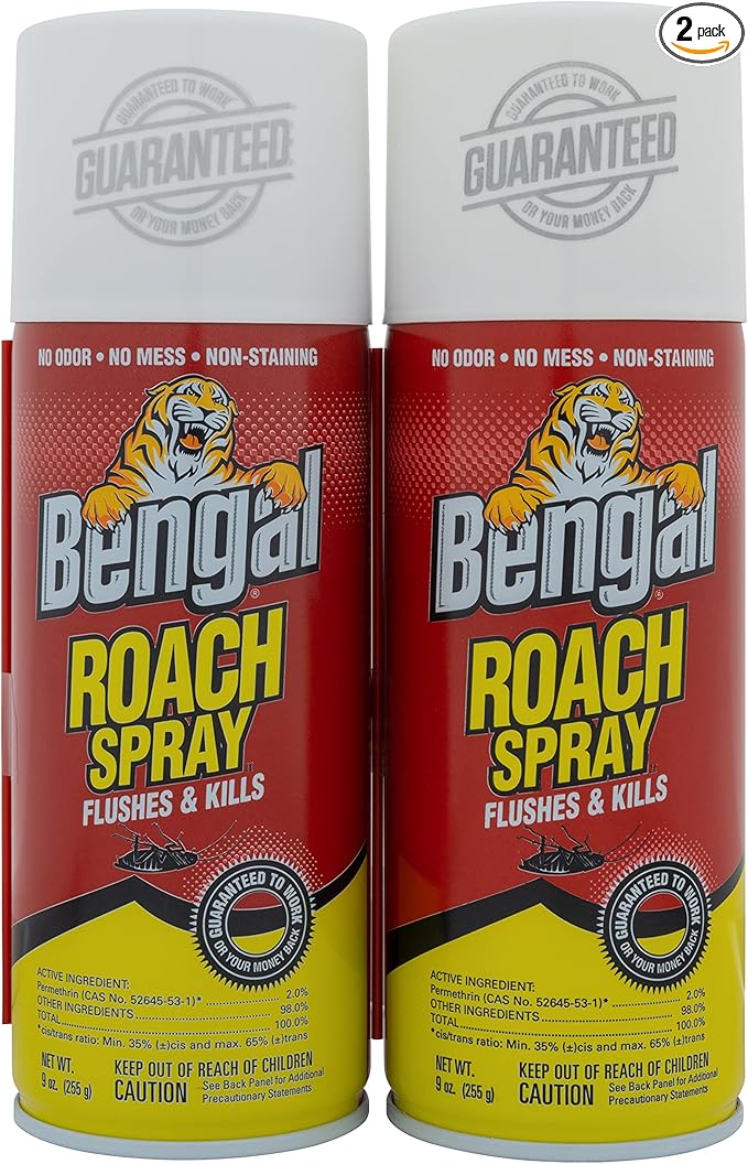 Bengal Roach Spray, Odorless Stain-Free Dry Spray, 2-Count, 9 Oz. Aerosol Cans