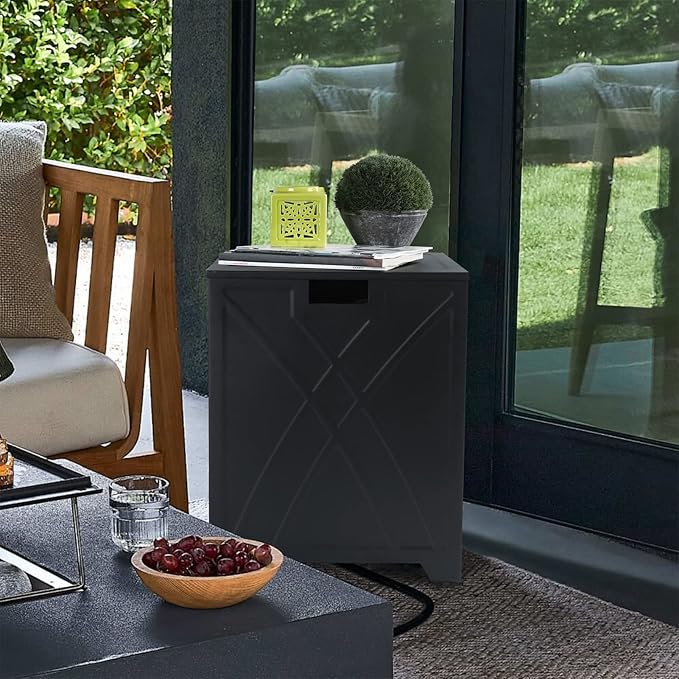 Propane Tank Cover, Propane Tank Storage Hideaway Table for Gas Fire Pits, Gas Tank Holder Storage Side Table for 20 lb Propane Tanks - Black