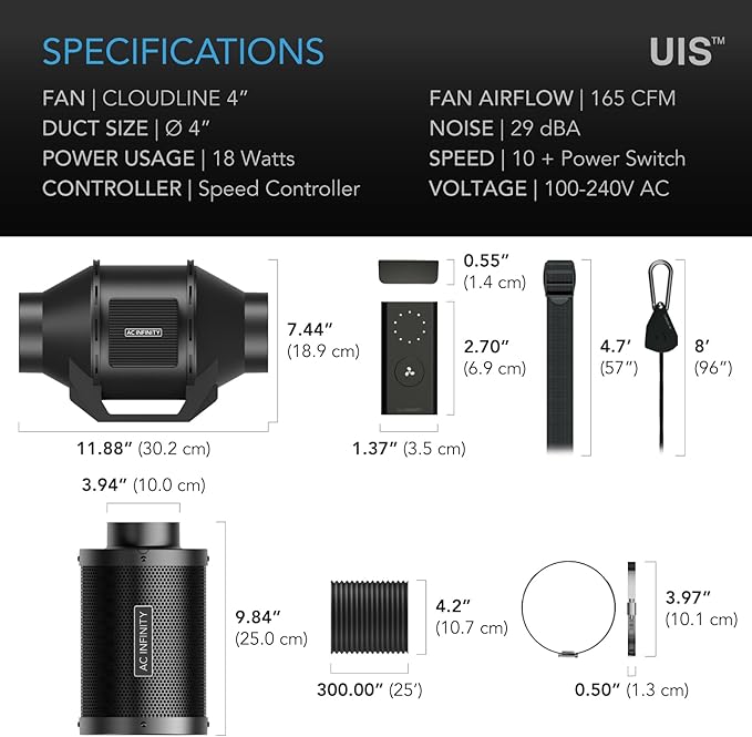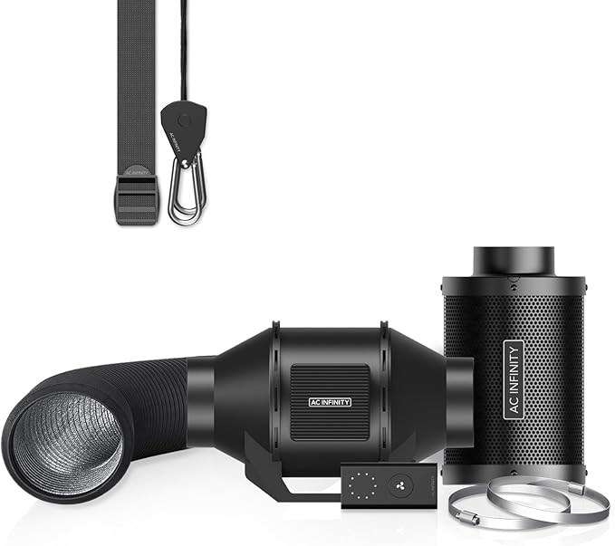 AC Infinity Air Filtration Kit 4”, CLOUDLINE LITE Inline Fan and Carbon Filter Combo, Cooling and Ventilation System for Grow Tents, Hydroponics, Indoor Gardening