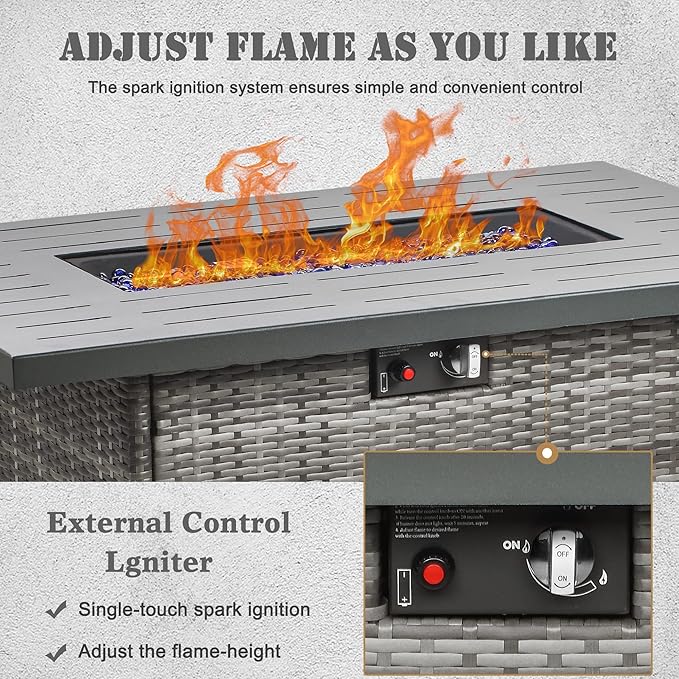 - SAFETY ECO-FRIENDLY - The 55000 BTU outdoor firepit table with CSA certification.Upgraded dual-tube burner to provide more stable and cleaner combustion.The button automatic ignition design can adjust and control the flame level, which is safer and more convenient.