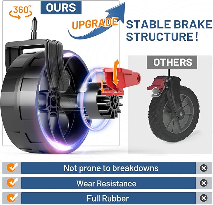 - ALL-TERRAIN PERFORMANCE: Equipped with 7.5" diameter all-terrain wheels with brakes,the middle tread is made of rubber, quiet and wear-resistant; 360° rotating front wheels and enable this wagon to maneuver easily.