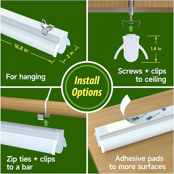 - ✅【Install by yourself】: 4 install options, so you can easily set-up the lights by yourself to plant shelves, flower racks or hang over your plants.
