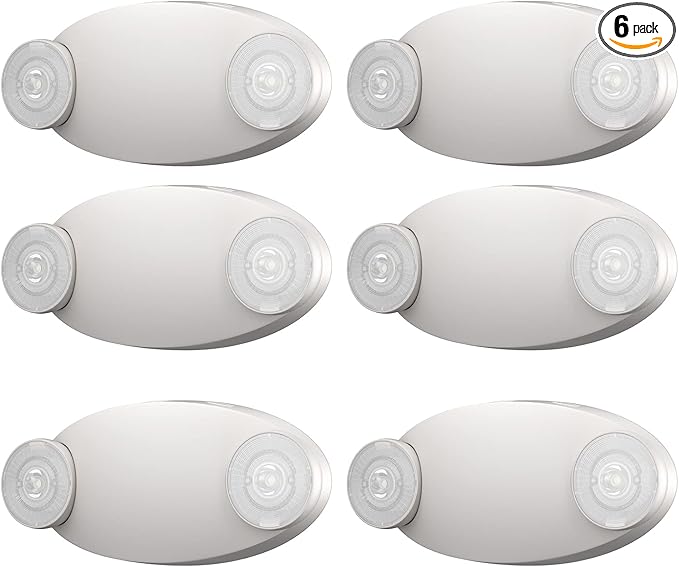 6 Packs LED Emergency Light with Battery Backup-Adjustable Hardwired 2 LED Bug Eye Head Wall Mount -UL Certified 120-22VAC White Emergency Exit Lighting Fixtures for Business/Home