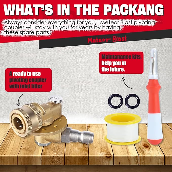 - Easy connection between pressure washer wand and pressure washer nozzle tips. It will save you considerable time for cleaning hard-to-reach areas , such as vehicle undercarriage, chassis, rims, pool wall, water tank and ideal for gutter cleaning. Undoubtedly this well-designed attachment pivoting coupler will save you unimaginable time in regular and special pressure cleaning work if you dislike bend down, squat down and stretch your arms for cleaning some inaccessible place and corner. This pivoting coupler will be always needed in anyway.