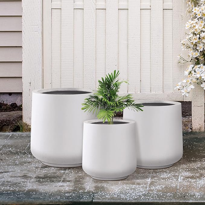 Kante 15.3"+11.6"+8.2" Dia Round Concrete Planter, Large Outdoor Indoor Planter Pots Containers with Drainage Holes and Rubber Plug for Home Garden Patio, Pure White