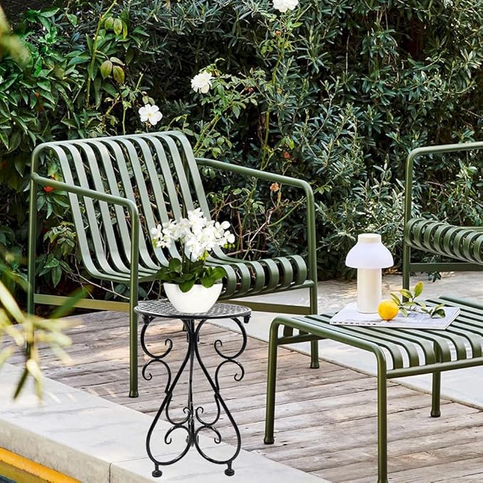 - 【Metal Material】This plant rack made of 100% cast iron, with a smooth matte finish, waterproof and rustproof. The circle grid table top can make the potted more absorb sunlight, it is suitable for 1 inch - 11 inch medium or small size flower pot. No pots and plants.