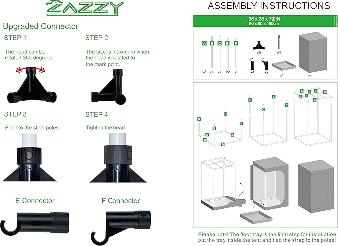- Easy to Assemble---Growing tents are simple and fast to install without any tools even if you've never done something like this before. The package includes the user-friendly and professional instruction well.