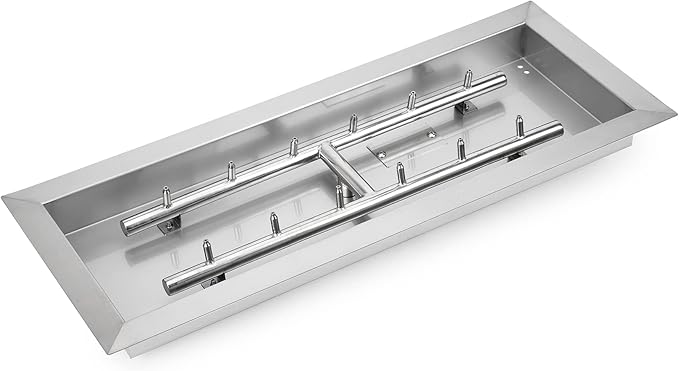Stanbroil 24" x 8" Upgrade Rectangle Fire Pit Jet Burner Pan, 304 Stainless Steel Natural & Propane Gas Firepit for Outside, High Flame, 90k BTU Max