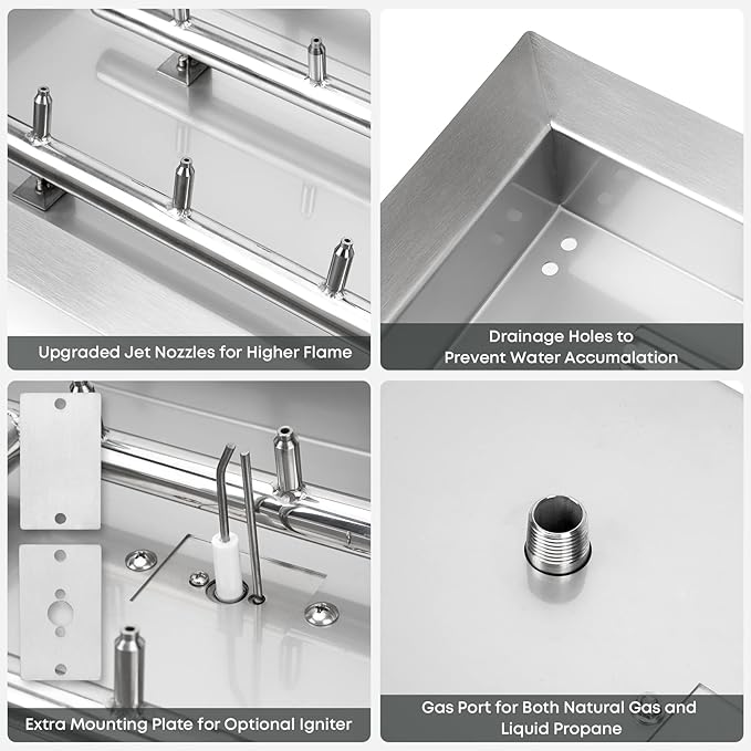 - Easy Installation: All you have to do is to drop this burner pan into your fire pit, hook up to a gas source, add some fire glass and youโre done (gas hoses and connection kit are not included).