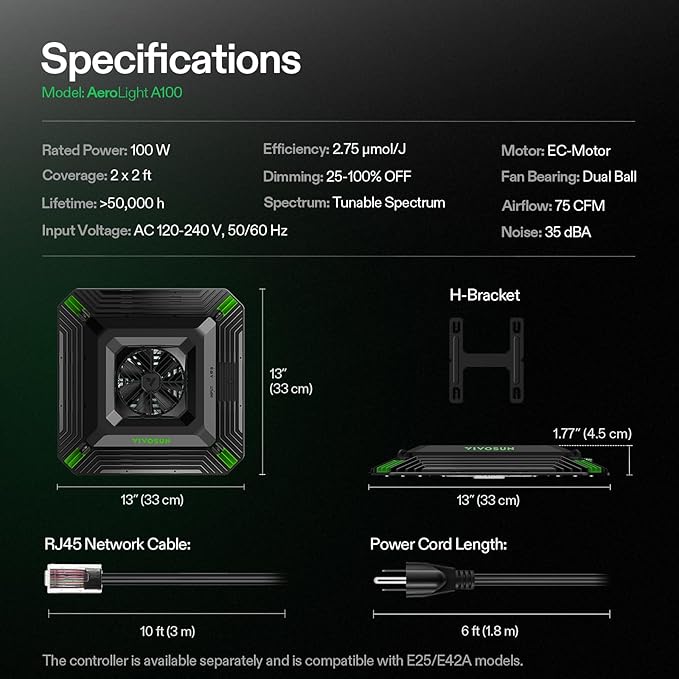 - Smart Control and Programming: The AeroLight is compatible with the Vivosun GrowHub Controller and App; You can also automate and customize day/night schedules to simulate natural environments; This package does not include this controller, which needs to be purchased separately, ASIN: B0BCFV11WG