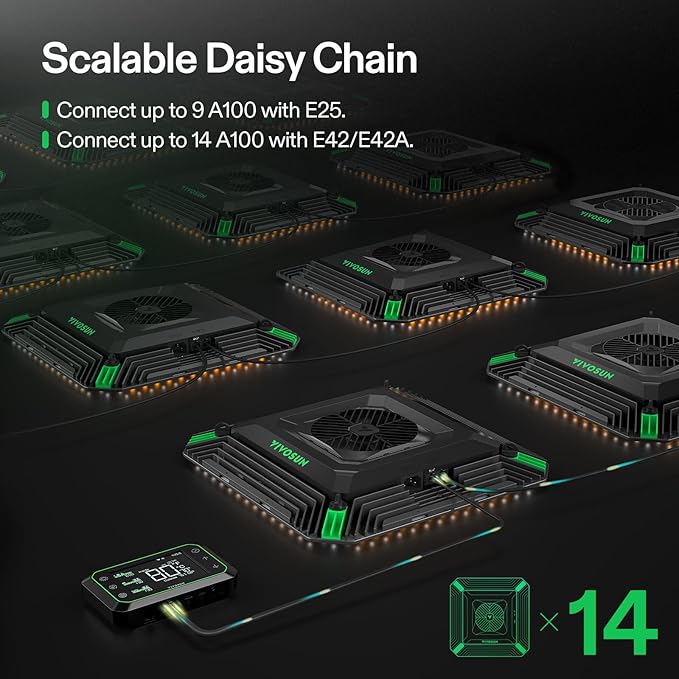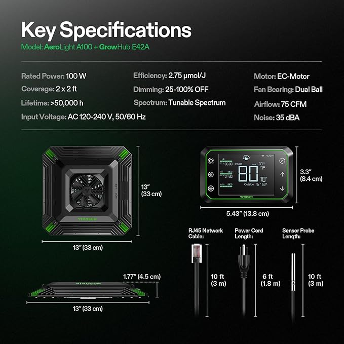 VIVOSUN AeroLight A100, Tunable Spectrum, LED Grow Light 100W with Integrated Circulation Fan & Growhub Controller E42A, Compatible with App & E25, 2x2/2x4Ft Coverage