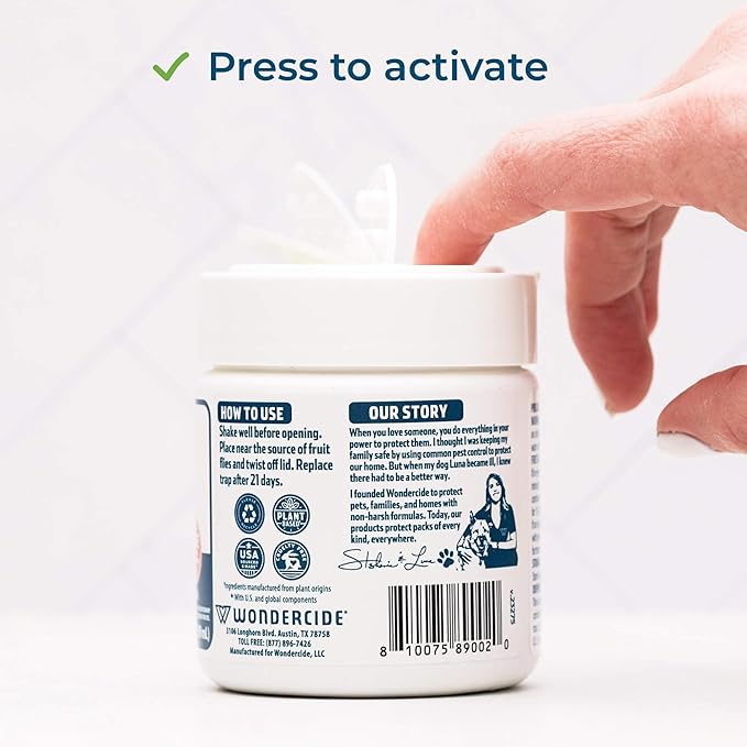 - SAFE AROUND KIDS AND PETS WHEN USED AS DIRECTED. Because this fruit fly catcher is plant-powered, you don’t have to worry when using this around kids and pets. Safe to use as needed around your loved ones, throughout the house, yet powerful enough to fully eliminate fruit flies and provide lasting defense of your household.