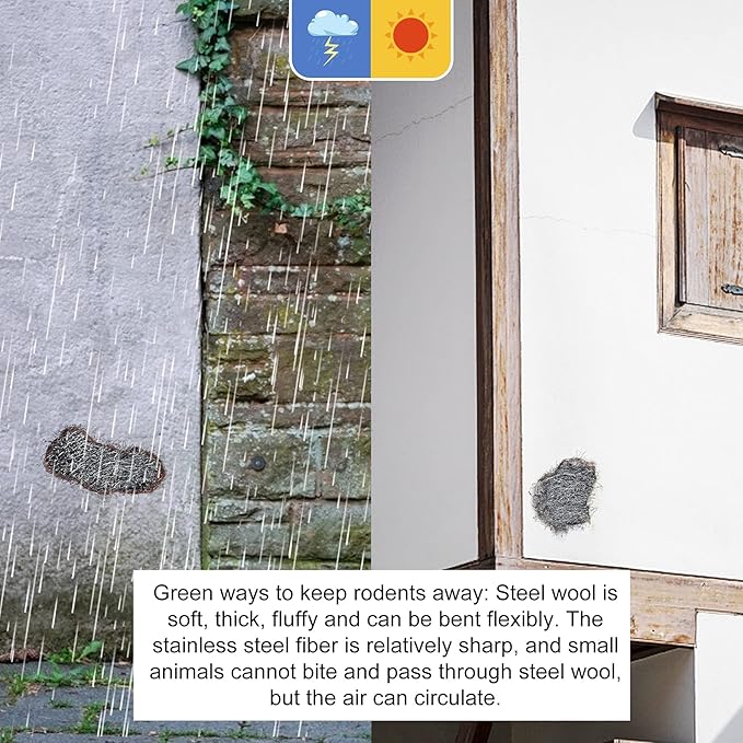 - Wide Range of Uses: Our steel wool pad is versatile and can be used both indoors and outdoors. Steel Wool is not easily corroded by rain. So the mouse hole filler is good for sealing gaps and holes around brick walls, piping systems, air conditioning equipment, windows, ventilation holes, wall panels etc.