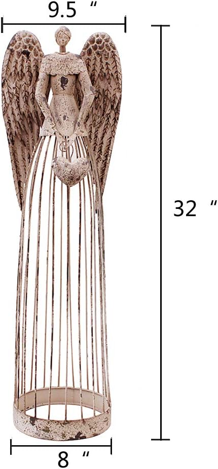 Linfevisi Garden Angel Statue Decor Rustic Metal Angel Sculpture Garden Yard Art Heavenly Home Decor Antiqued Accent Housewarming Gift 32 Inch Tall (Heart)