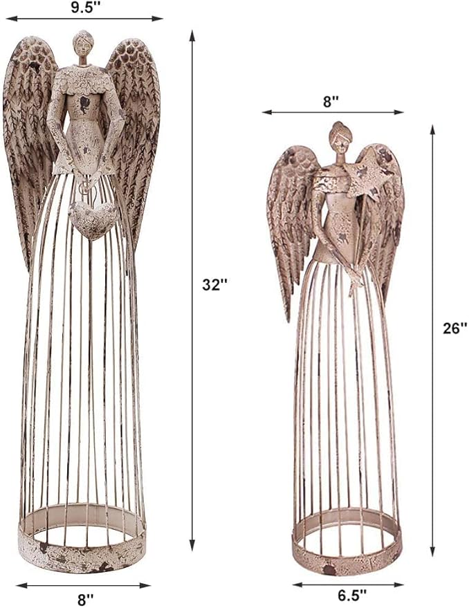 - RUSTIC ANGEL SIZE: The metal garden angel decor measures 26x6.5 inch and 32x8 inch, is a very sturdy yard decor with nice patina, rustic and unique.