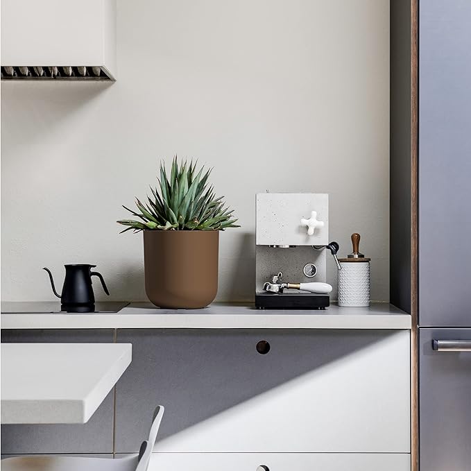 Veradek Round Lima Planter Pots for Indoor/Outdoor Garden Use | Made from Plastic & Concrete w/Drainage Holes | Modern Décor for Tall Plants, Flowers, Trees