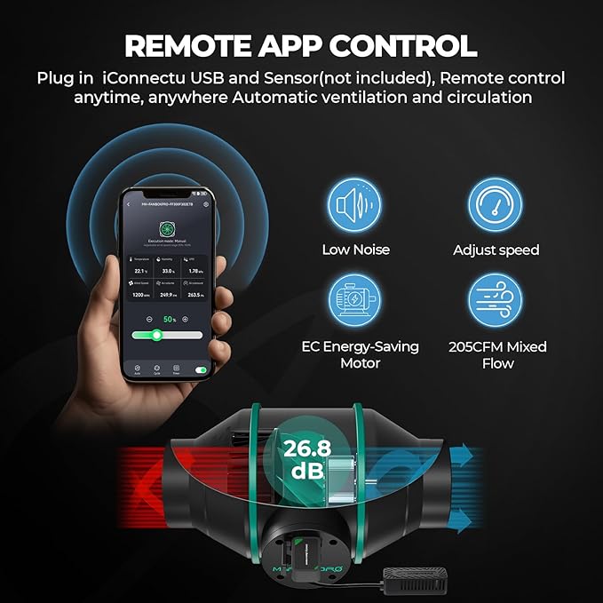 - ✩✩【2025 New Upgraded Smart Ventilation】✩✩This ventilation kit has been completely upgraded. Simply purchase our Iconconnect USB and sensor in store and connect to the Mars Hydro app via Bluetooth/WiFi to intelligently monitor and set temperature and humidity, achieving automatic ventilation and circulation.