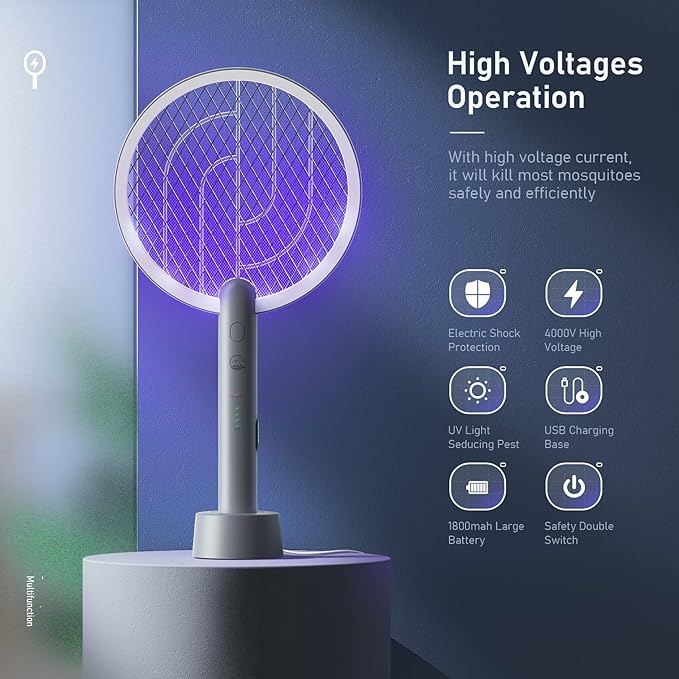 - π¦π ππ π π΄ππππππππππππ π©ππ ππππππ - Adopted new 2 in 1 Mosquito Swatter design, you can use manual this Bug Zapper as Mosquito Racket to kill all flying types of bugs, mosquitos, and flies. Besides, you also put it in the rechargeable base as Insect Killing Lamp. Enjoying a comfortable & peaceful happy hour