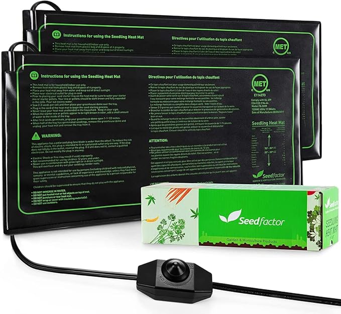 MET Certified 2 Pack Seedling Heat Mat, Seedfactor Adjustable Temperature Waterproof Durable Germination Station Heat Mat, Warm Hydroponic Heating Pad for Indoor Home Gardening Seed Starter