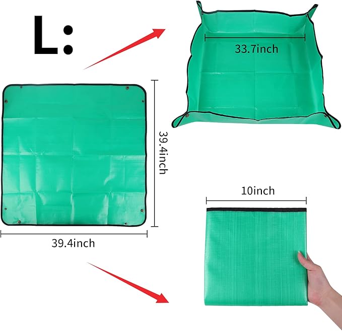 - What you will get: 1pc extra large 39.4" x 39.4" mat for indoor/outdoor plant repotting. Gathered up your gardening tools, soils, pots, plants, watering can,seeds,flower etc. Perfect for repotting or any messy task you may have at home for all of year-round.We put emphasize on the product experience of customers. Any problems about the waterproof planting tarp mat, please feel free to contact us. We provide a Lifetime Money Back or Replacement if not 100% satisfied.