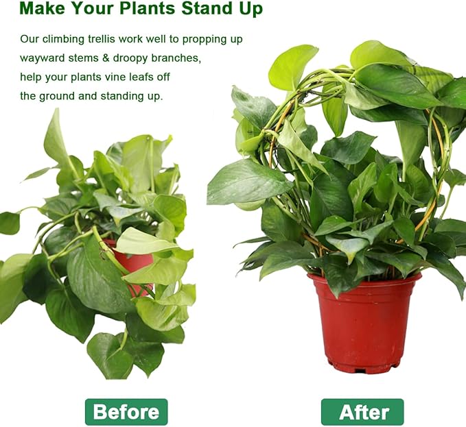 - Trellis Support for Climbing Plants: Our indoor plant trellis support for plants in the pot for climb up, help your climbing plants vine leafs off the ground and standing up, plants will climb onto the round iron ring, you will get a natural potted plant to decorate your house